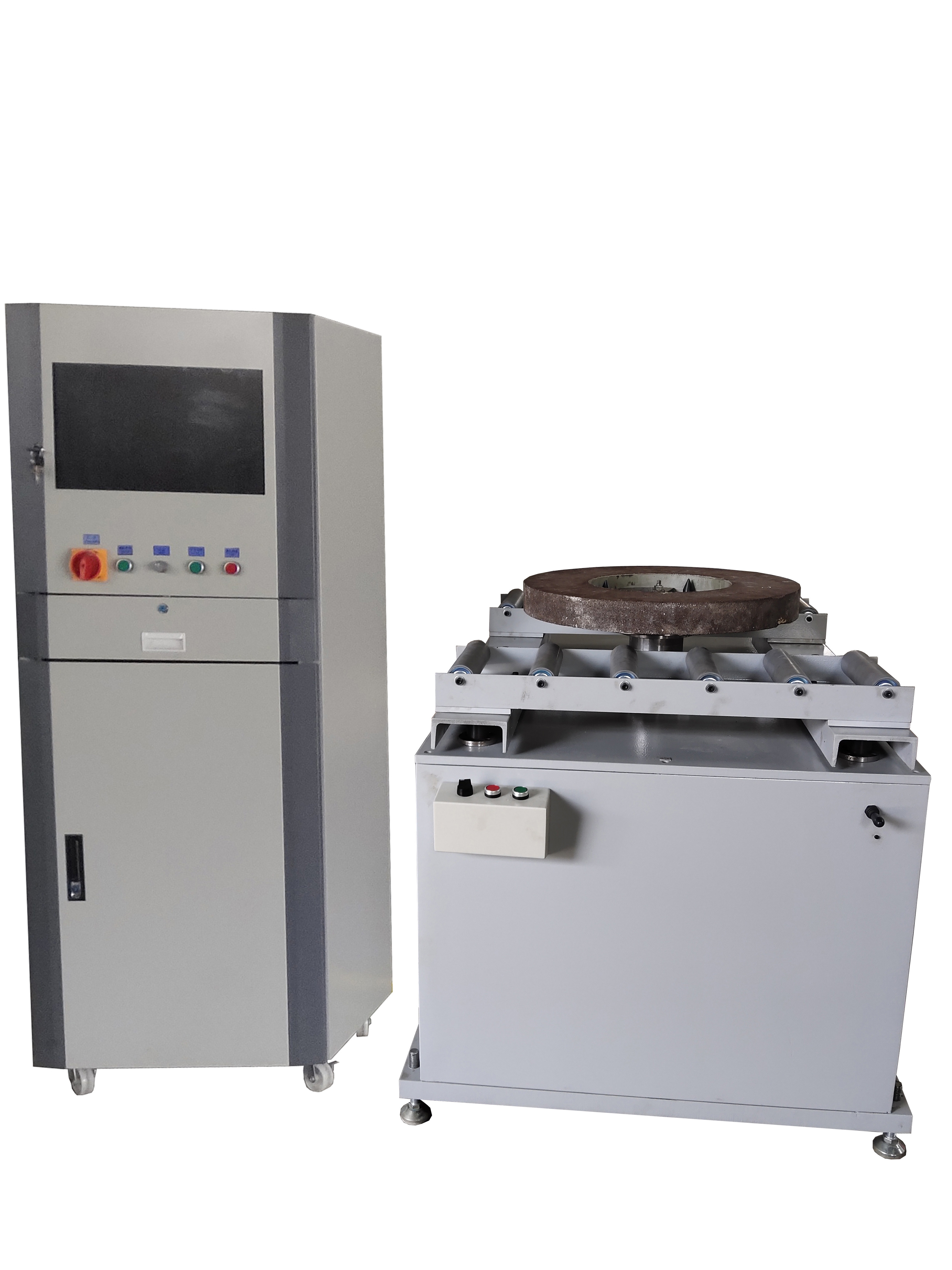 This series is a very cabinet single-sided vertical dynamic balancing machine has been produced for 300-5000kg, this machine is suitable for disc rotating parts on a single side of dynamic balance calibration, heavy-duty flywheels, pulleys, water pump impellers, special motors and other parts. The weight of the workpiece, the weight of the workpiece, the equipment adopts pneumatic or hydraulic clamping of the workpiece, because the equipment is large-diameter, so the software has an angle tracking function. The data is processed by the industrial control computer, and the color screen displays the unbalance value, phase angle and real-time speed in real time, and is equipped with an industrial cabinet, which forms a balancing machine system with the mechanical part, which is convenient for parameter storage and printing, and the system has high test accuracy, reliable use, convenient maintenance, and is more advanced than other test systems. And according to the customer's workpiece, we can customize a variety of special fixtures for customers.